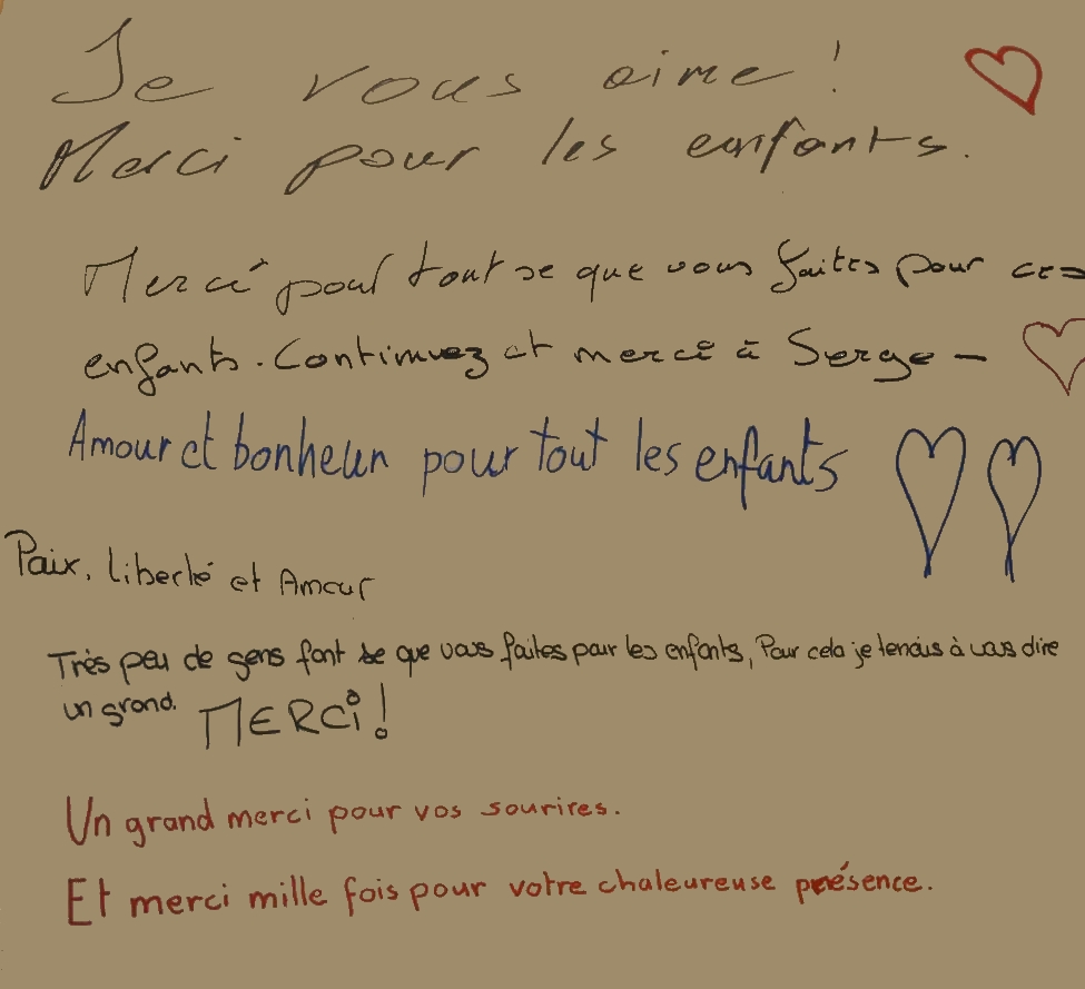 Une pluie de remerciements, toutes aussi diverses et chaleureuses et de belles photos de la joie provoquée, un plaisir partagé autant par les adultes que par les enfants et l’imagination n’a pas de borne. Un plaisir autant pour ceux qui ont envoyé les colis que par ceux qui les ont reçus.