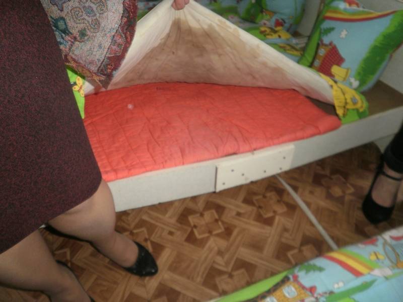 Les sommiers sont usés et en très mauvais état. Ils rouillent et détériorent les draps et les couvertures. Les fonds des lits sont en dur, sous forme d’une planche en bois, et tout cela pour accueillir des enfants en bas âge.