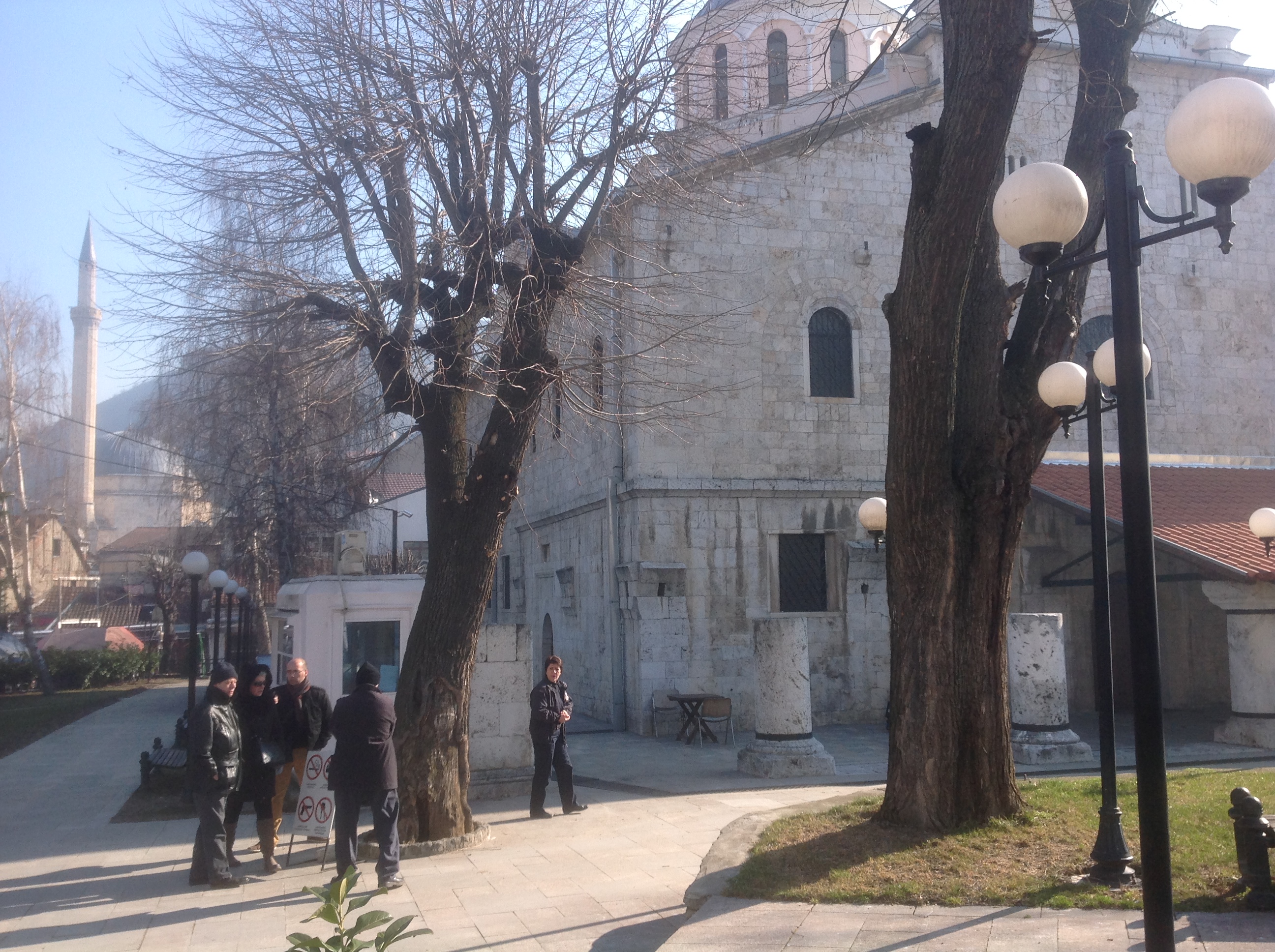 Le lendemain de notre arrivée, au matin du 20 février, durant notre ballade à travers les ruelles de la vieille ville, ne passant bien évidemment pas inaperçus à force de converser en français et traduire parfois en albanais, à un moment, nous nous sommes fait accoster par un homme. Habillé en costume cravate et accompagné de deux ou trois personnes dans la même tenue, cet individu se trouvait être le directeur de l’office du tourisme de la ville de Prizren. Sa curiosité et sa fonction l’amènent à poliment nous demander d’où nous venons et dans quel contexte nous sommes arrivés là. Au départ, il pensait que Christine, Chello, Bernard et Pasquale étaient ce que j’appelle « des internationaux » (salariés étrangers travaillant pour les institutions internationales basées au Kosovo) et que j’étais employé comme traducteur … Je lui ai rapidement dit que non, nous n’étions que de simples touristes domiciliés en Suisse et qu’étant originaire du pays, j’ai souhaité le leur faire découvrir puisqu’ils ont contribué à aider la population du Kosovo par l’intermédiaire de l’association « Istok ». Agréablement surpris, il me demandais alors de traduire au groupe sa question qui était de savoir quels étaient leurs a priori sur le Kosovo avant d’y aller et quelle était alors leur vison après les quelques jours de visite.